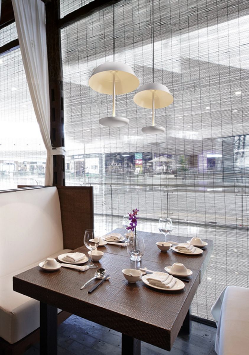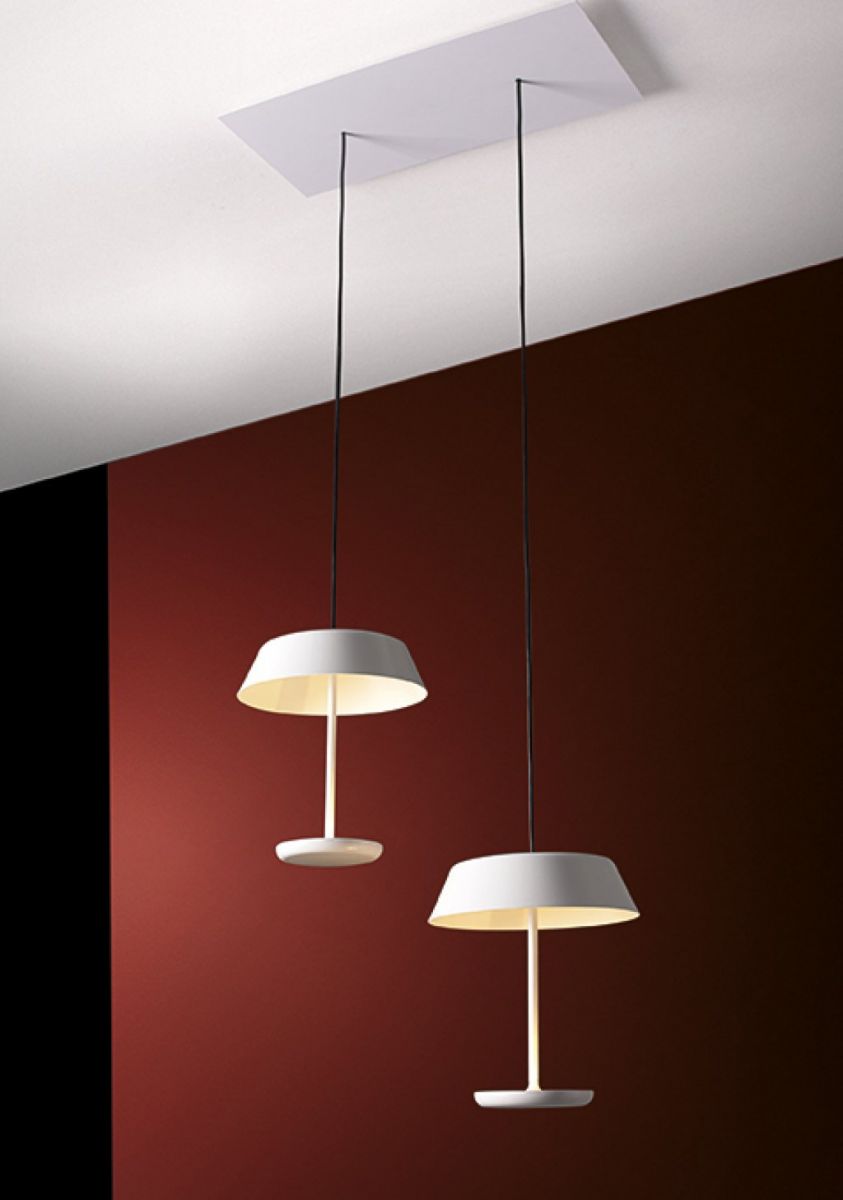Witte pendelarmatuur in de vorm van een opgehangen klassieke tafellamp. Deze pendelarmatuur kan worden gecombineerd met andere armaturen om complexe composities te creëren. PLAFONDKAP NIET INBEGREPEN.