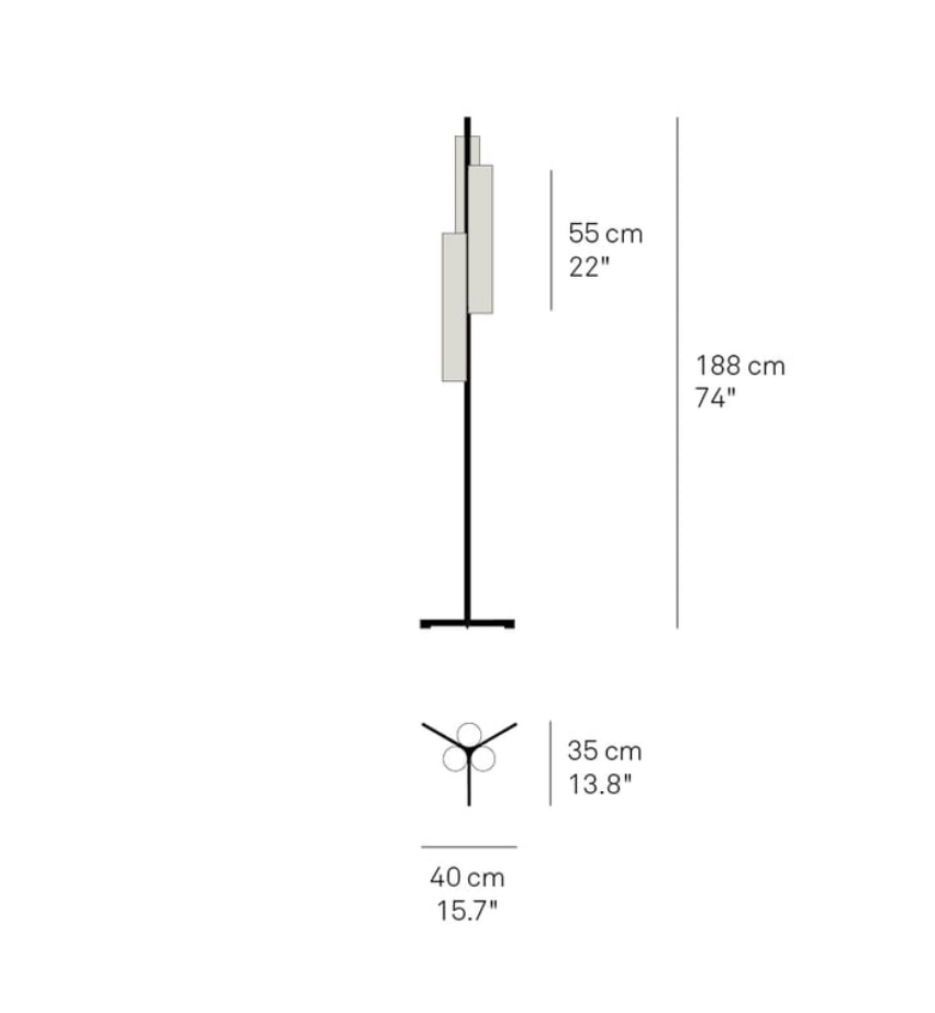 Black Note Triplet Floor, ontworpen door Ramón Esteve, is geïnspireerd op de zwarte pianotoetsen. Drie verticale kappen van houtfineer, geplaatst op verschillende hoogtes op een metalen voet, geven de lamp een elegante en karaktervolle uitstraling. Verkrijgbaar in Natural Cherry, Ivory White of Natural Beech, met metalen afwerking in matzwart of goud.