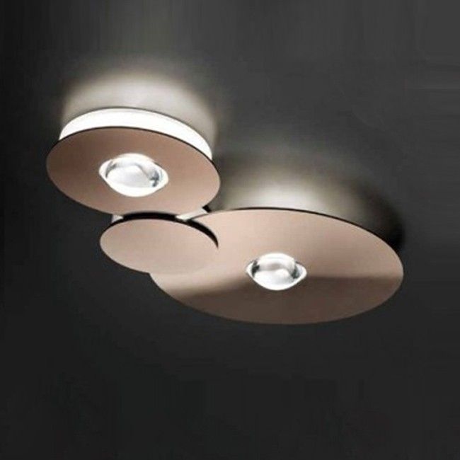 Elegante plafondarmatuur bestaande uit meerdere cirkelvormige elementen. Deze armatuur heeft een metalen structuur afgewerkt in glanzend brons en difusers vervaardigd uit plexiglas. Bulgia Double levert beide direct en indirect licht.