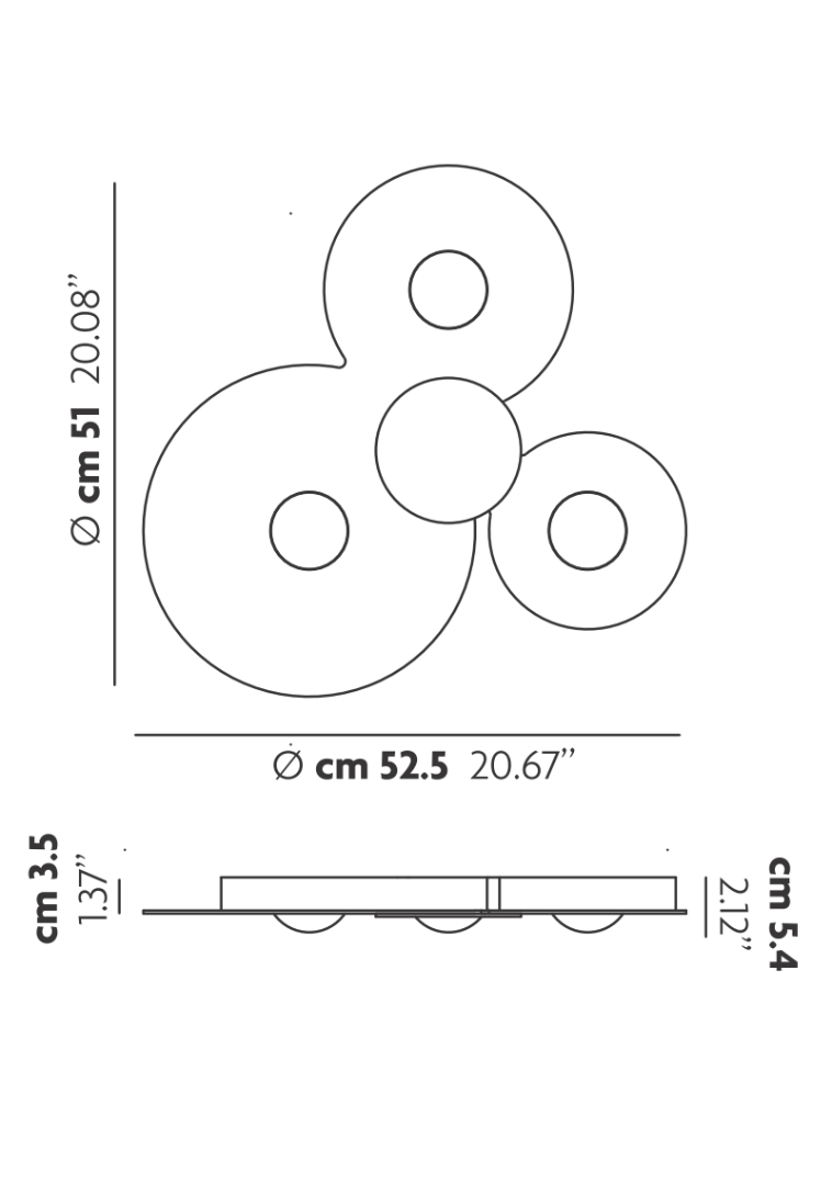 Elegante plafondarmatuur bestaande uit meerdere cirkelvormige elementen. Deze armatuur heeft een metalen structuur afgewerkt in chroom en diffusers vervaardigd uit plexiglas. Bulgia Triple levert beide direct en indirect licht.