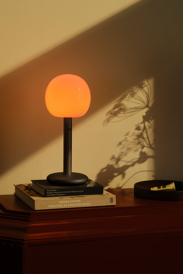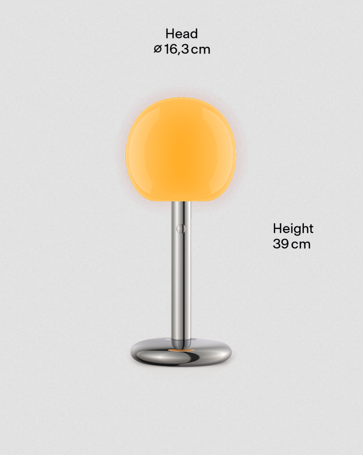 Fire is een draagbare lamp van aluminium en mondgeblazen glas die een warme sfeer brengt in elke ruimte. Pas de lichtkleur en intensiteit aan, en activeer de 30-minuten slaaptimer met een dubbele klik.