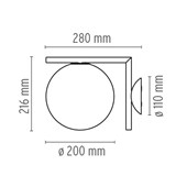 Wandarmatuur met opgelichte sfeer vervaardigd uit geblazen opaal glas en een frame vervaardigd uit geborsteld roestvrij staal met een afwerking in chroom.