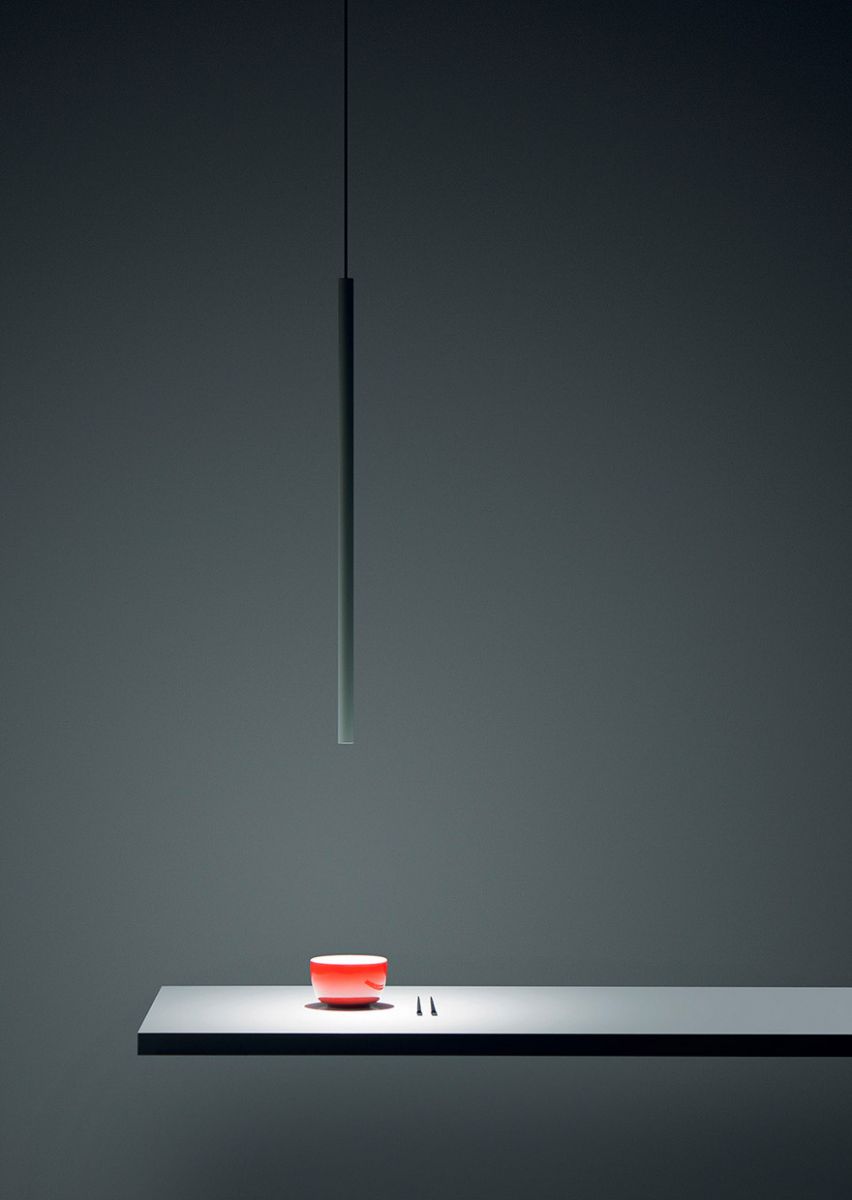 Mat zwarte tubulaire hanglamp vervaardigd uit metaal.