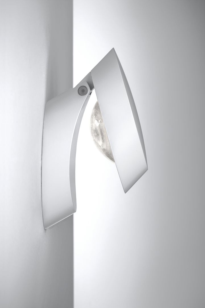 Compacte witte wandarmatuur met een organisch design. Deze armatuur opent zoals een schelp en kan door dit mechanisme het licht van de zeer heldere led naar verschillende richtingen wijzen.