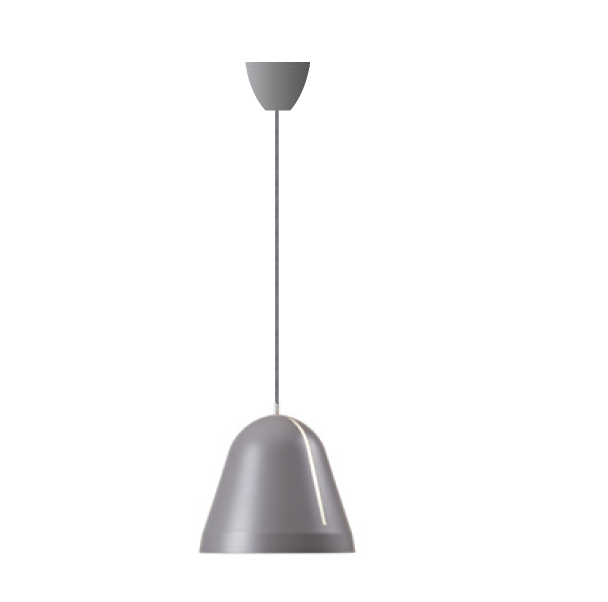 Lampenkap in mat grijs gelakt aluminium (binnenzijde in mat wit) en baldakijn uit grijze kunststof.