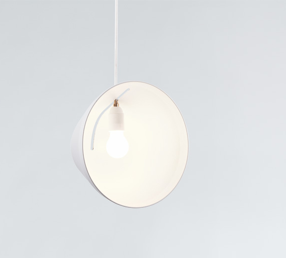 Lampenkap in mat wit gelakt aluminium en baldakijn uit witte kunststof.