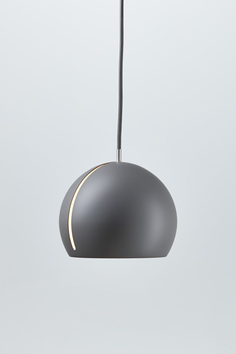 Lampenkap in mat grijs gelakt aluminium (binnenzijde in mat wit) en baldakijn uit grijze kunststof.